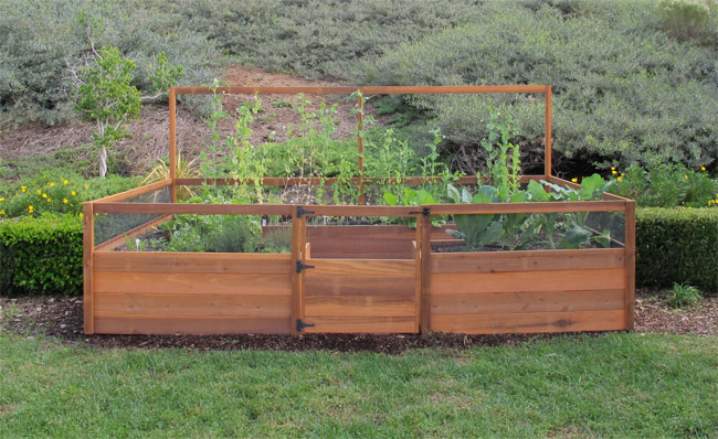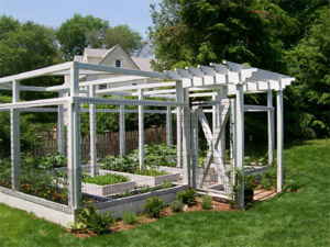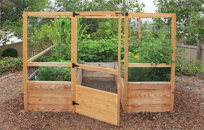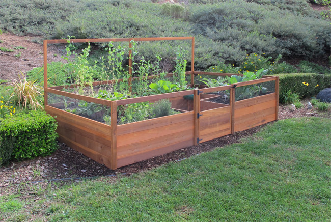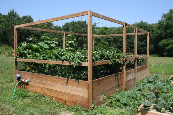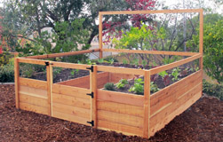 4"x4" Reach-Through Trellis Netting The trellis is backed with sturdy reach-through 4"x4" netting, so you can harvest all vegetables from the inside of the fenced garden, without having to walk behind the structure. The trellis is ideal for growing peas, green beans, tomatoes and cucumbers.
