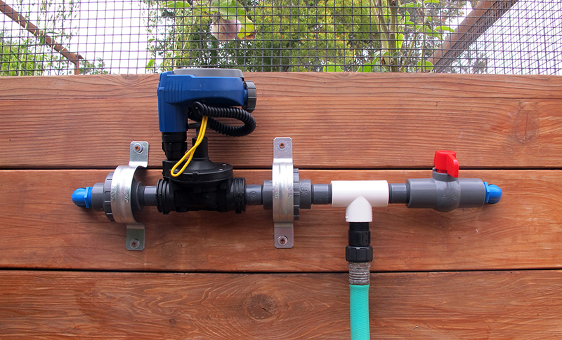 Optional Automatic Watering System An automatic soaker hose irrigation system takes even the simplest of duties out of your hands. We use a digital battery operated controller, manufactured by DIG Corporation, that is very easy to use. You can attach a garden hose to the inlet fitting, or connect it to your underground piping. When the controller turns on, water seeps out through the 75' soaker hose (hose stakes included). You'll never need to worry about watering your garden-it takes care of itself.